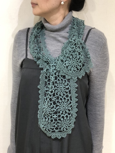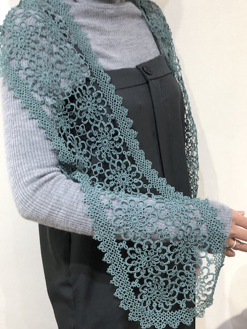 両端から進めて、何とか残り糸でエジングまでできそうな、約150㎝のショールは出来そうというところまで進めました。